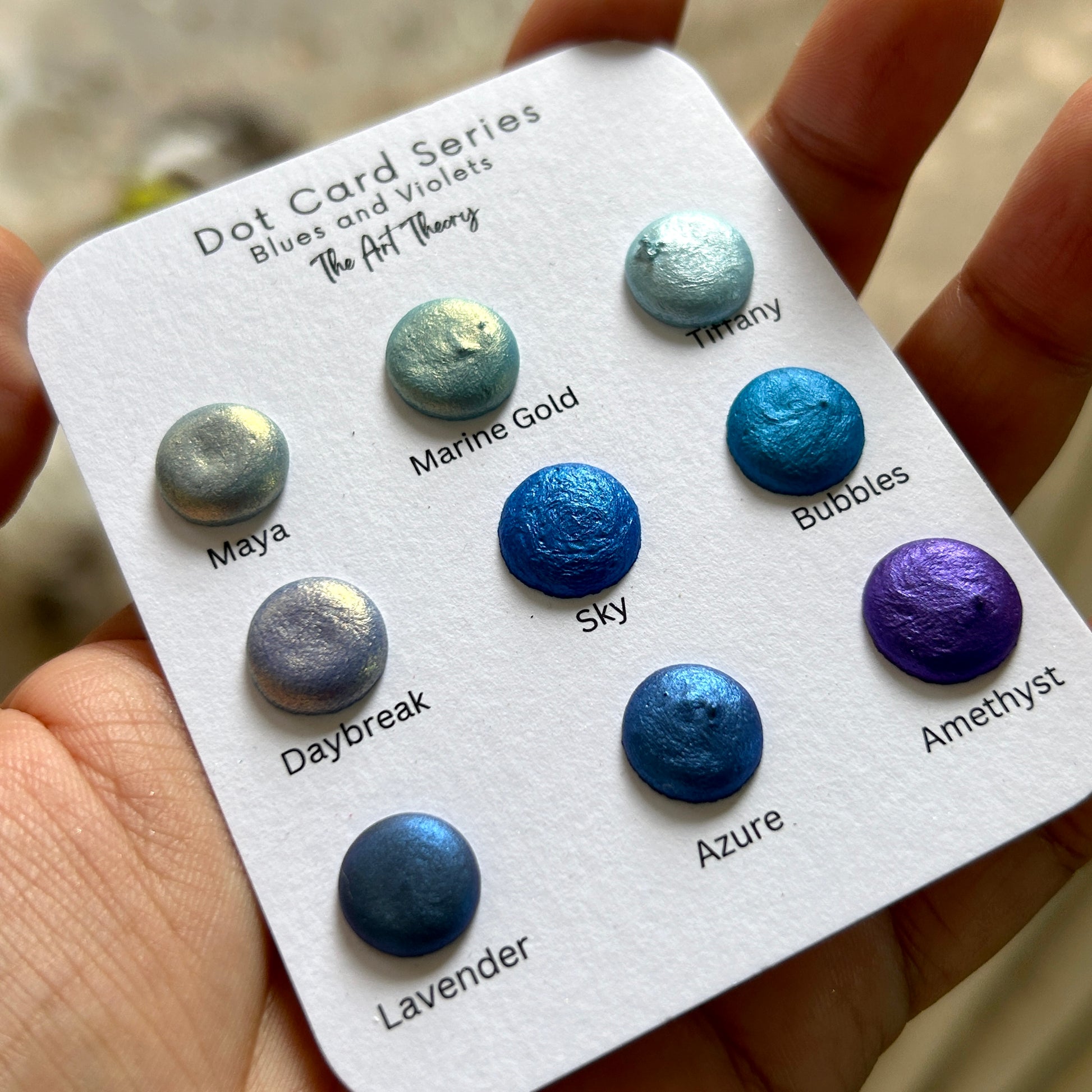 BLUES Mica watercolor dot cards - metallic shimmer watercolour paints handmade