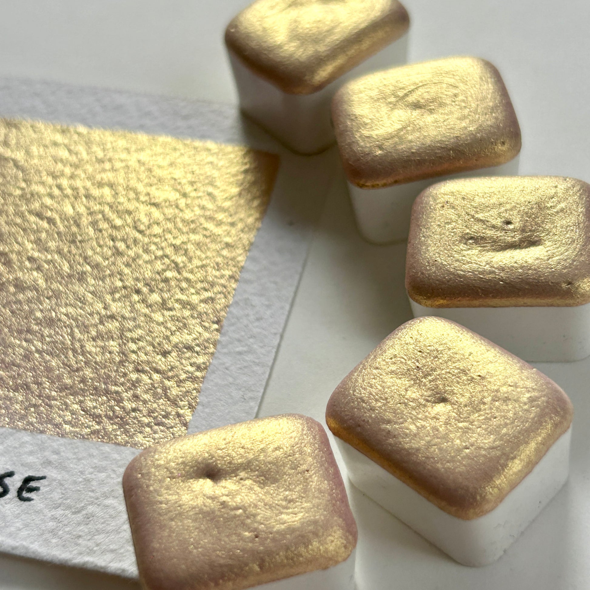 Dusty Rose handmade watercolor dual tone shimmer metallic watercolour paint