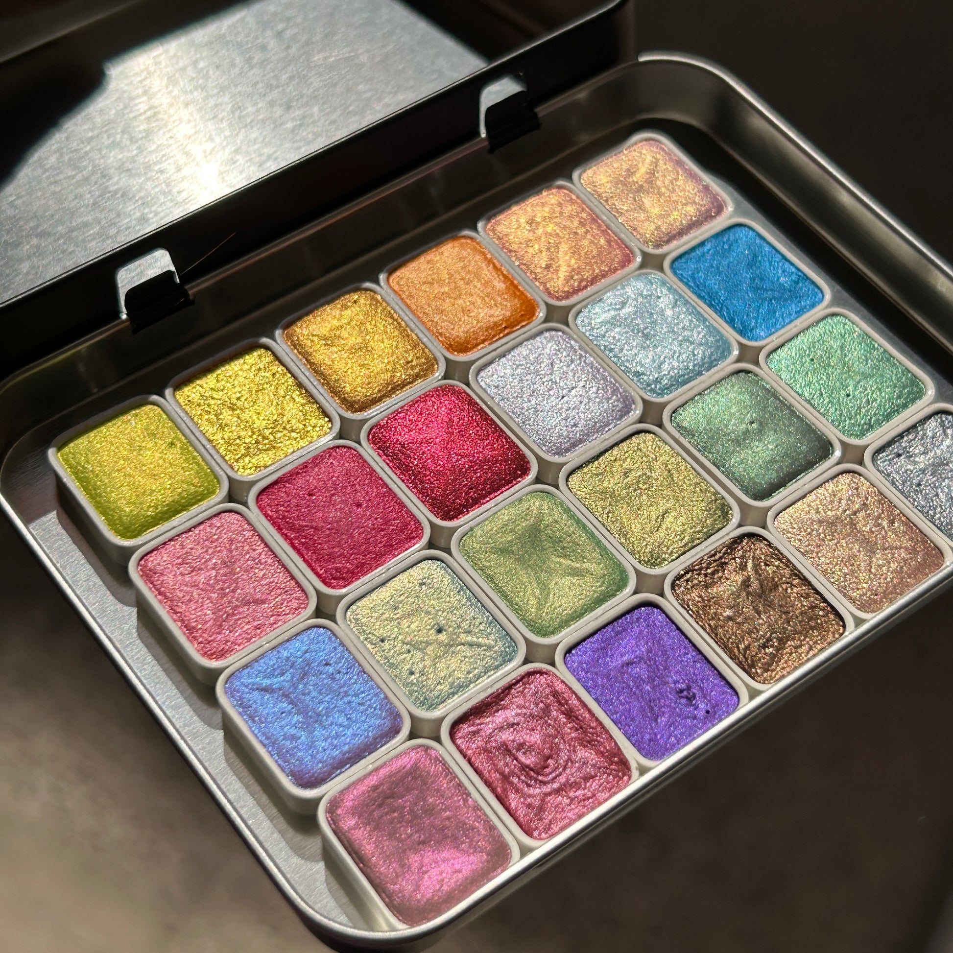 Grab box metallic shimmer micas watercolors - 24 shades in a tin box